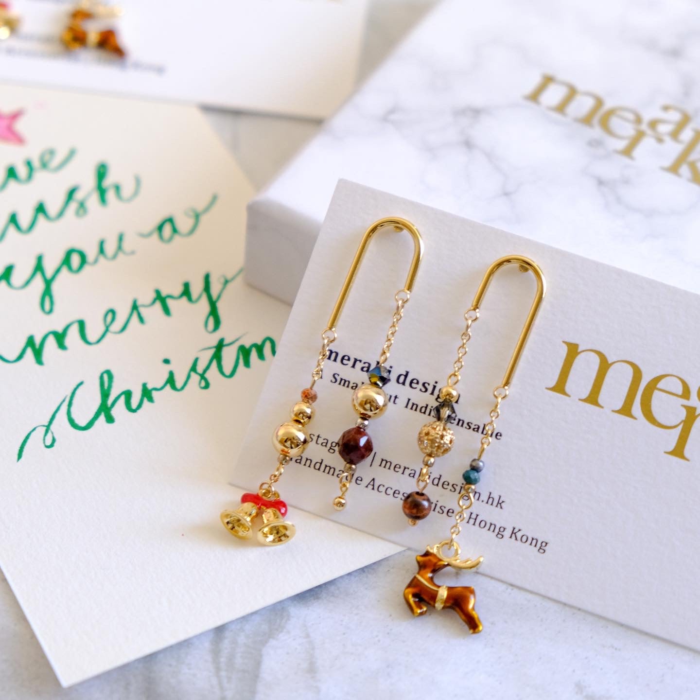 Deer and Jjingle Bells U-shaped Drop Earrings