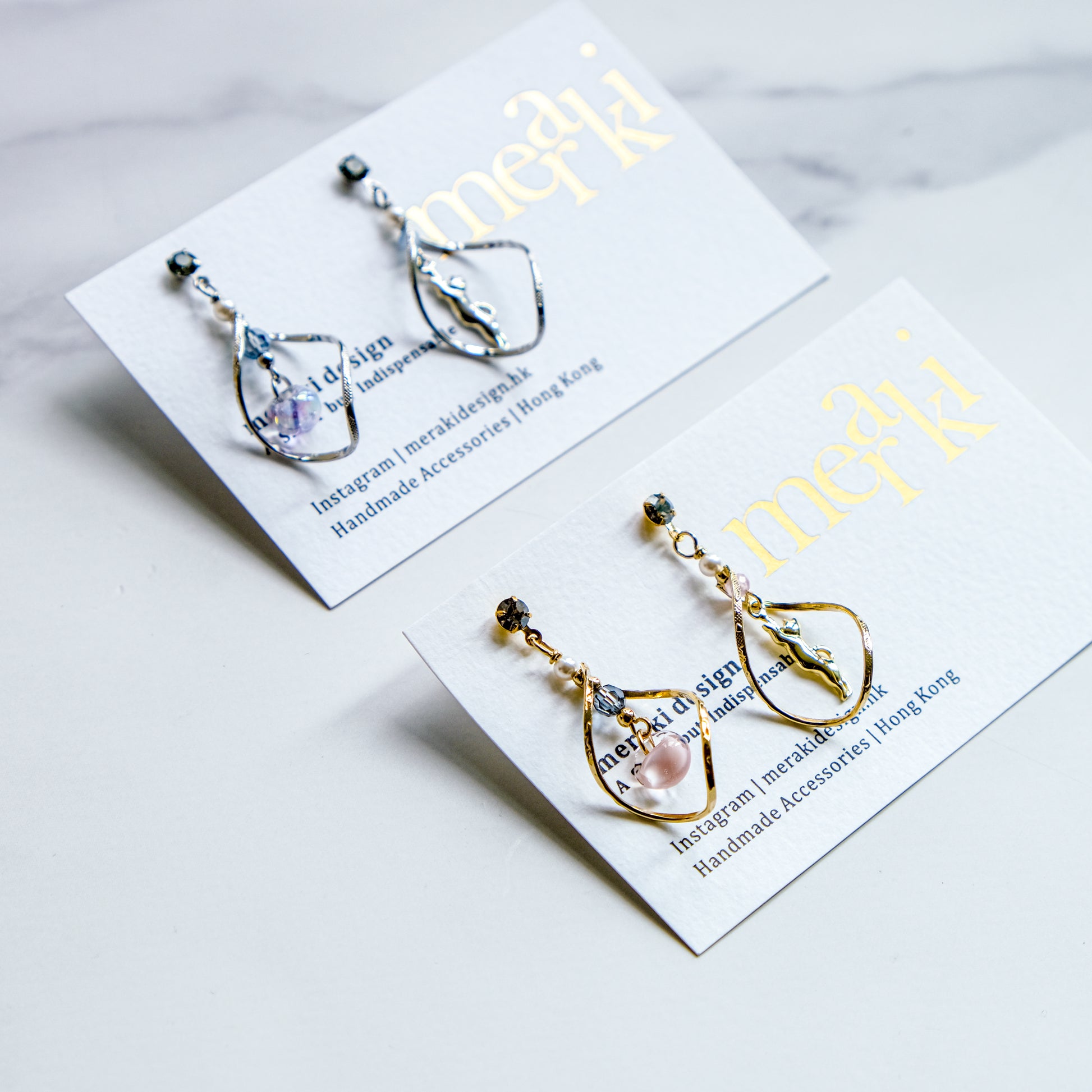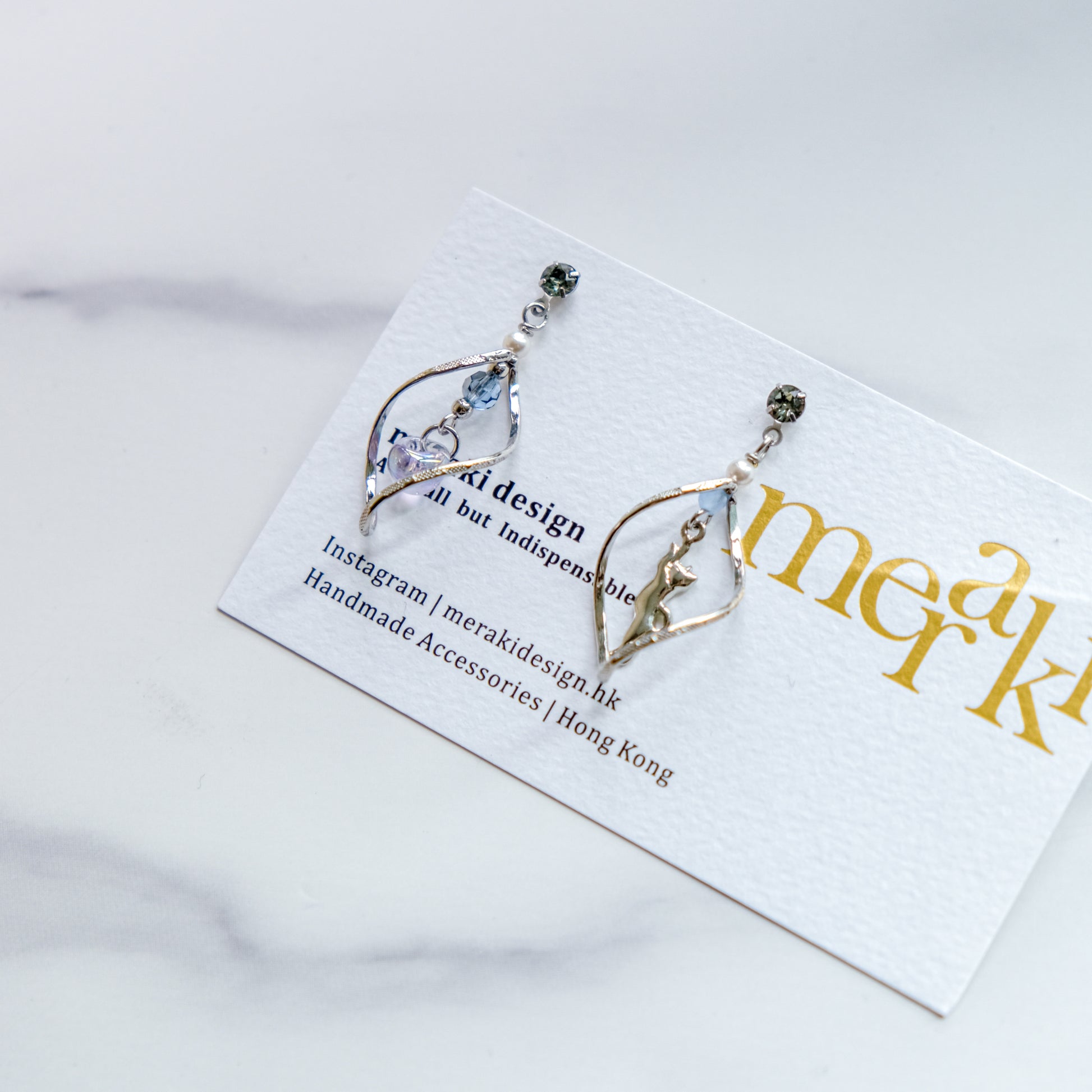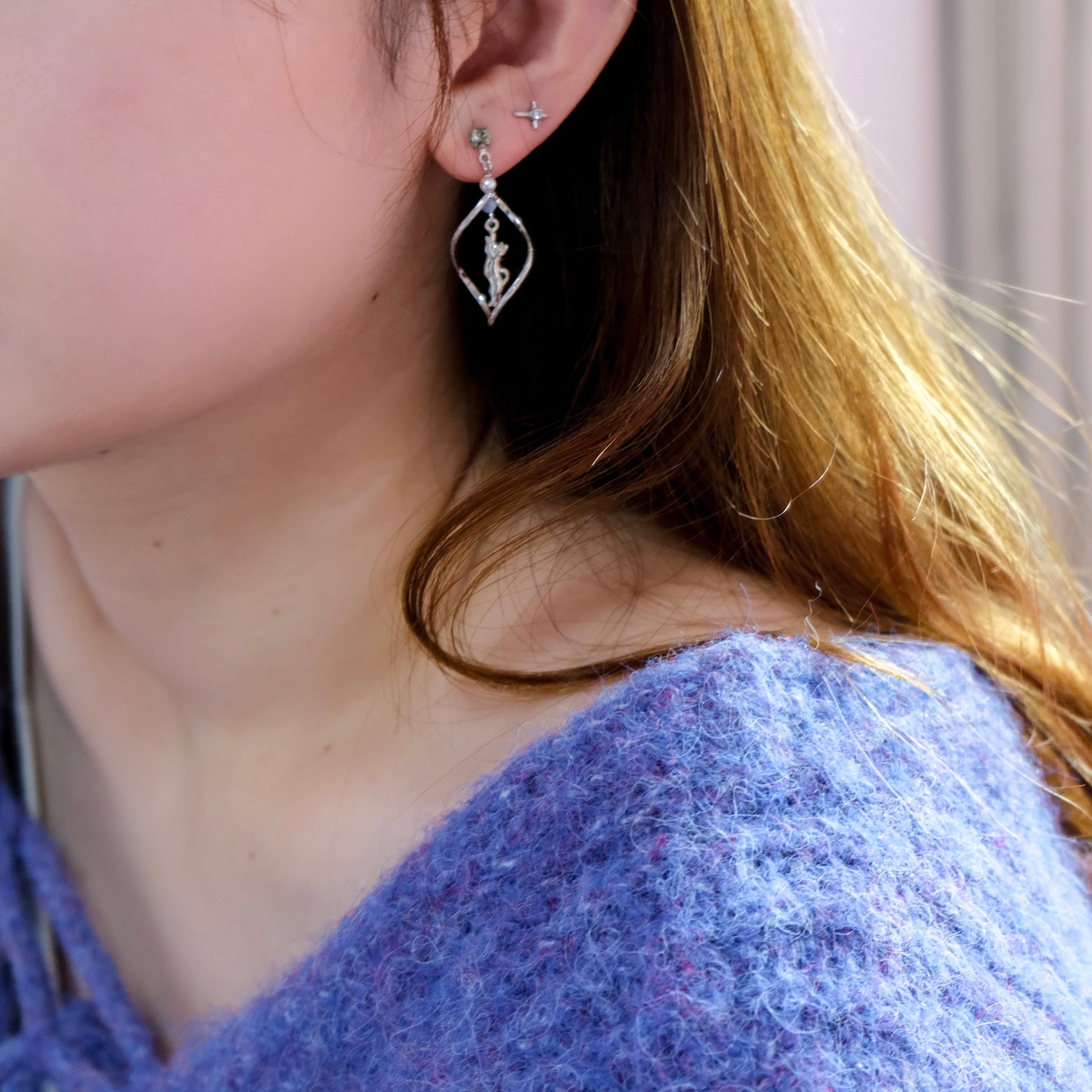 Cat Looking at the Moon w/ USA Tears Pearl Earrings