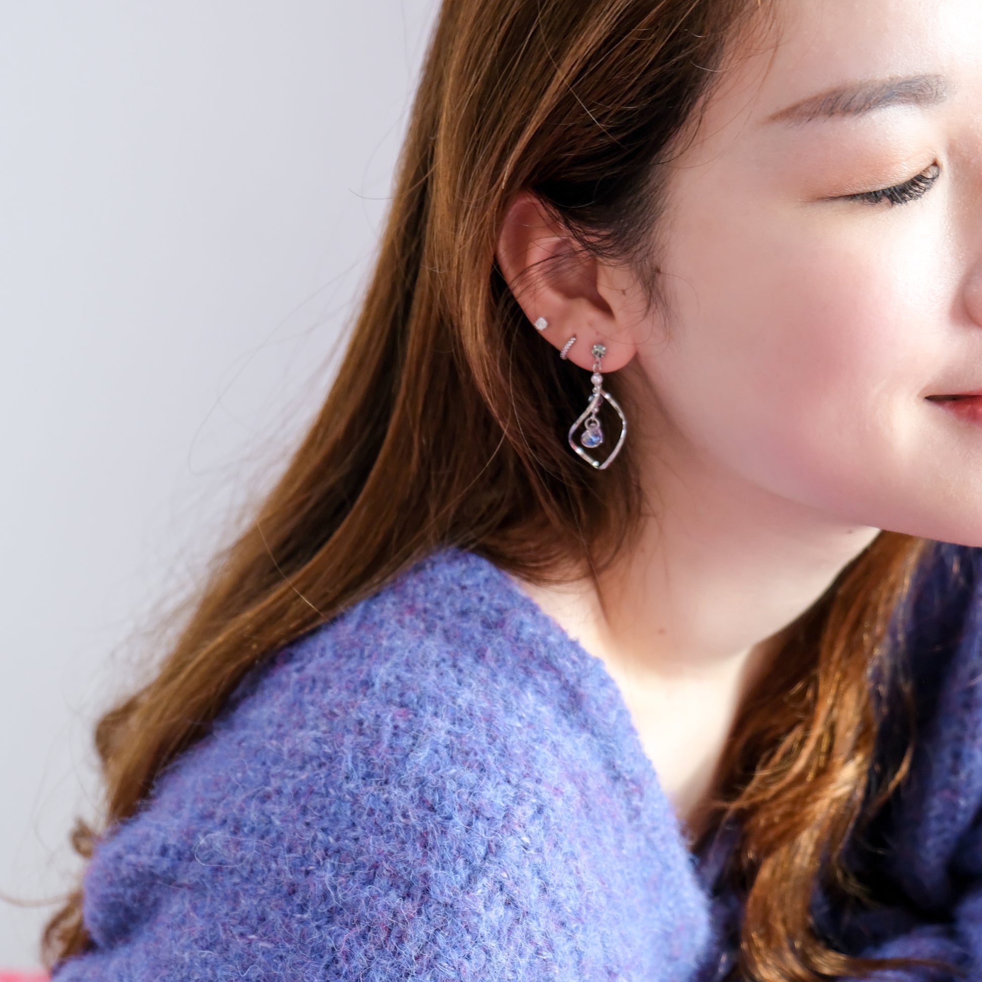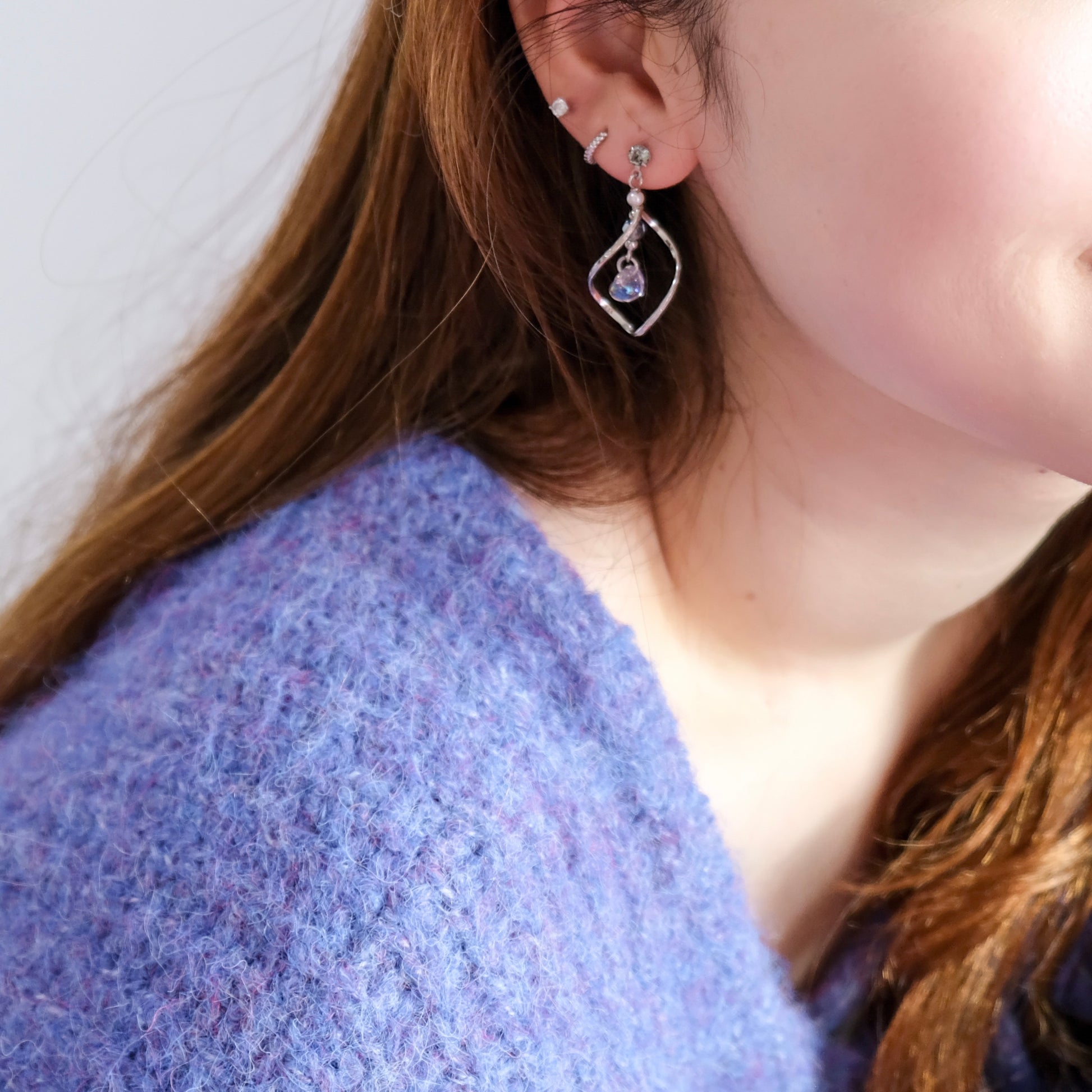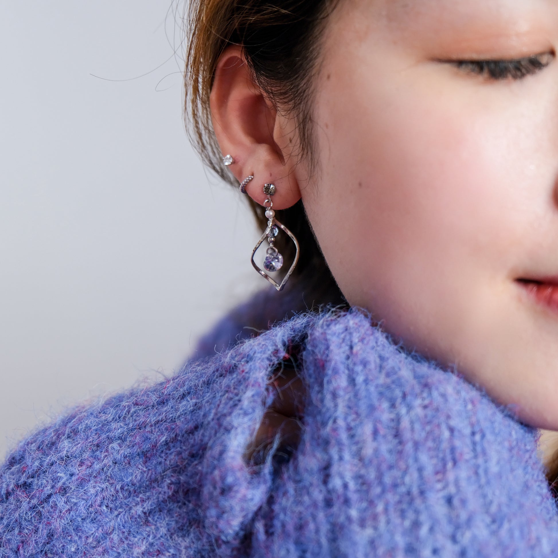 Cat Looking at the Moon w/ USA Tears Pearl Earrings