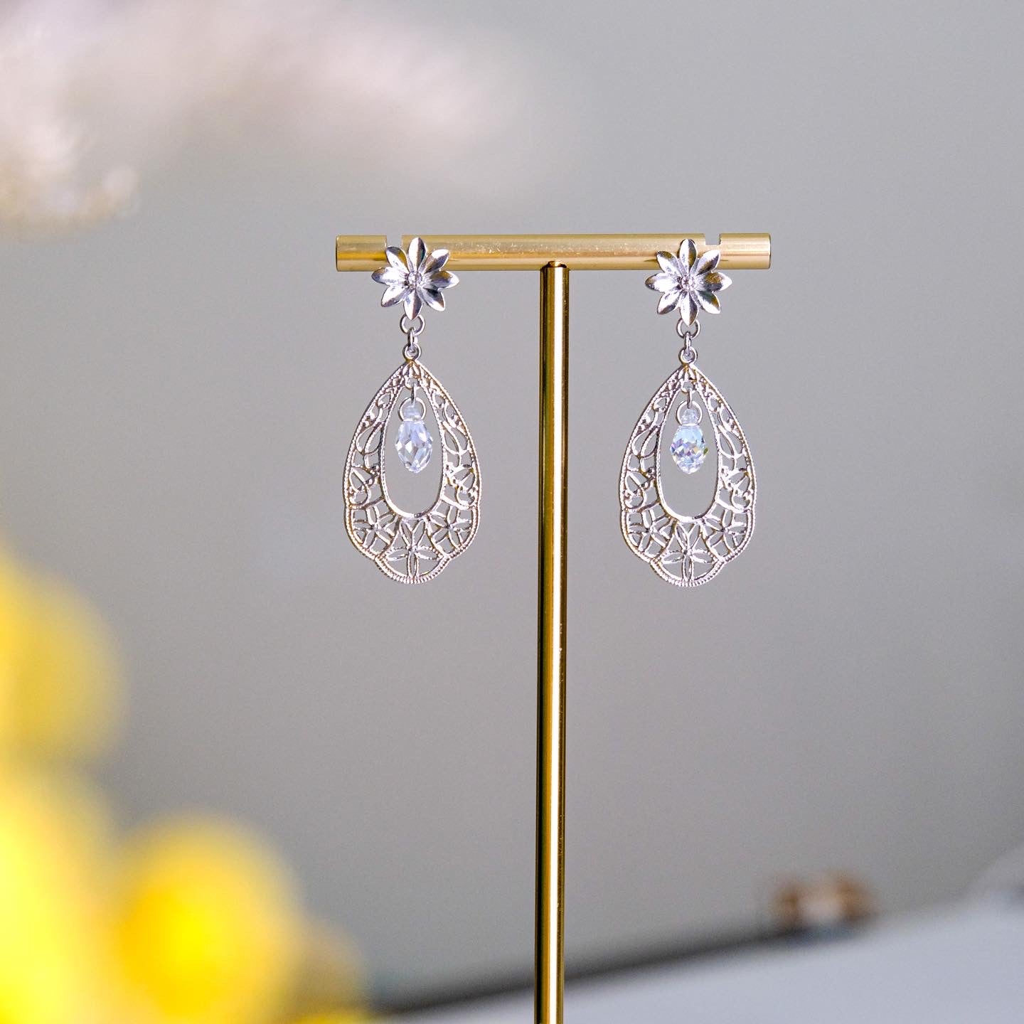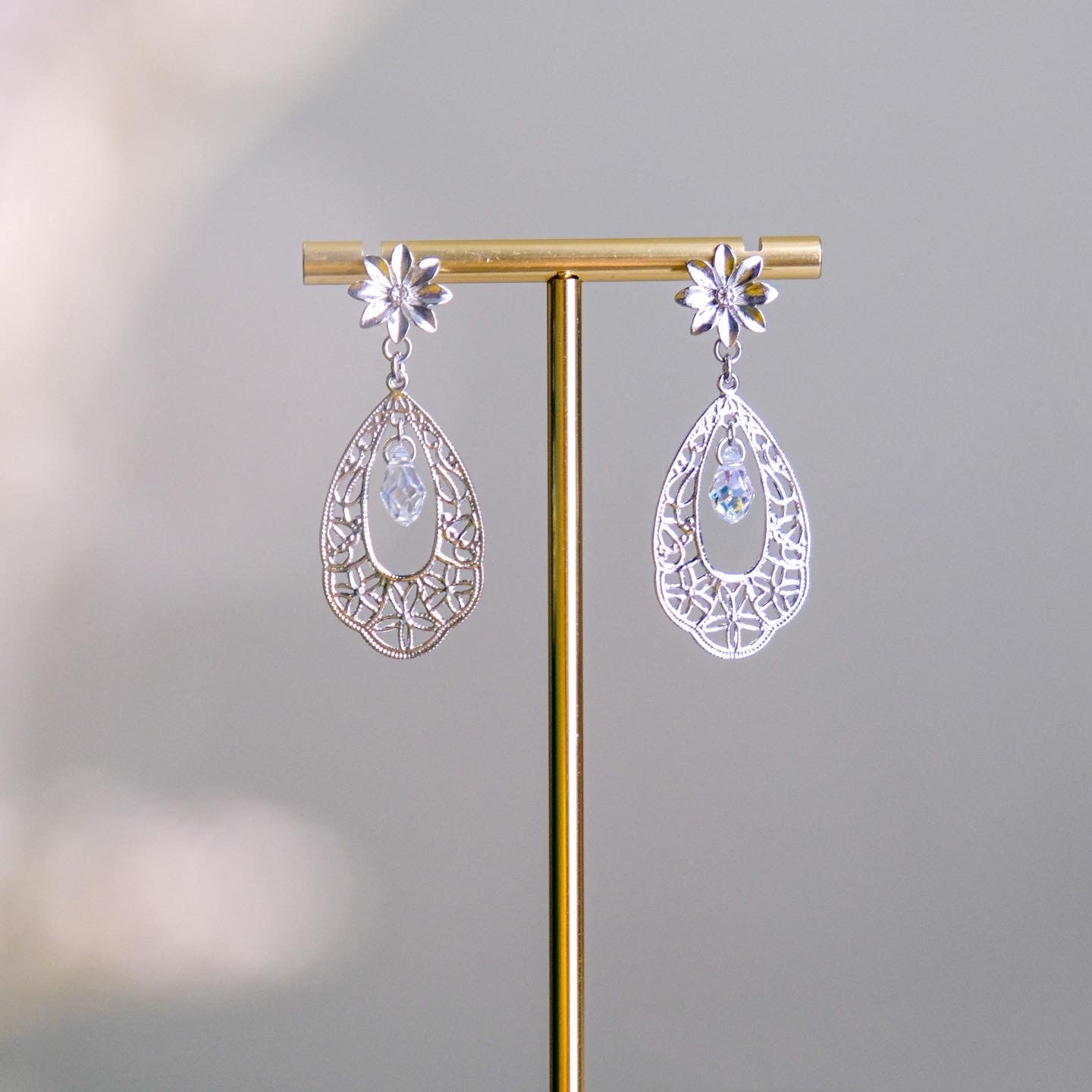 Flower of Life Daisy Hollow Swarovski Crystal Earrings