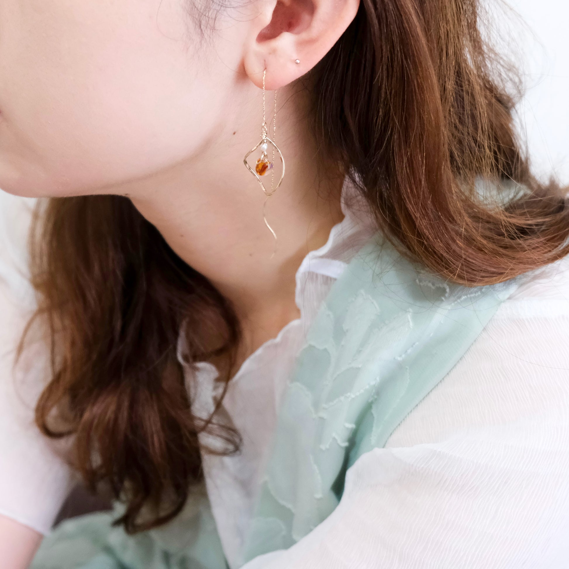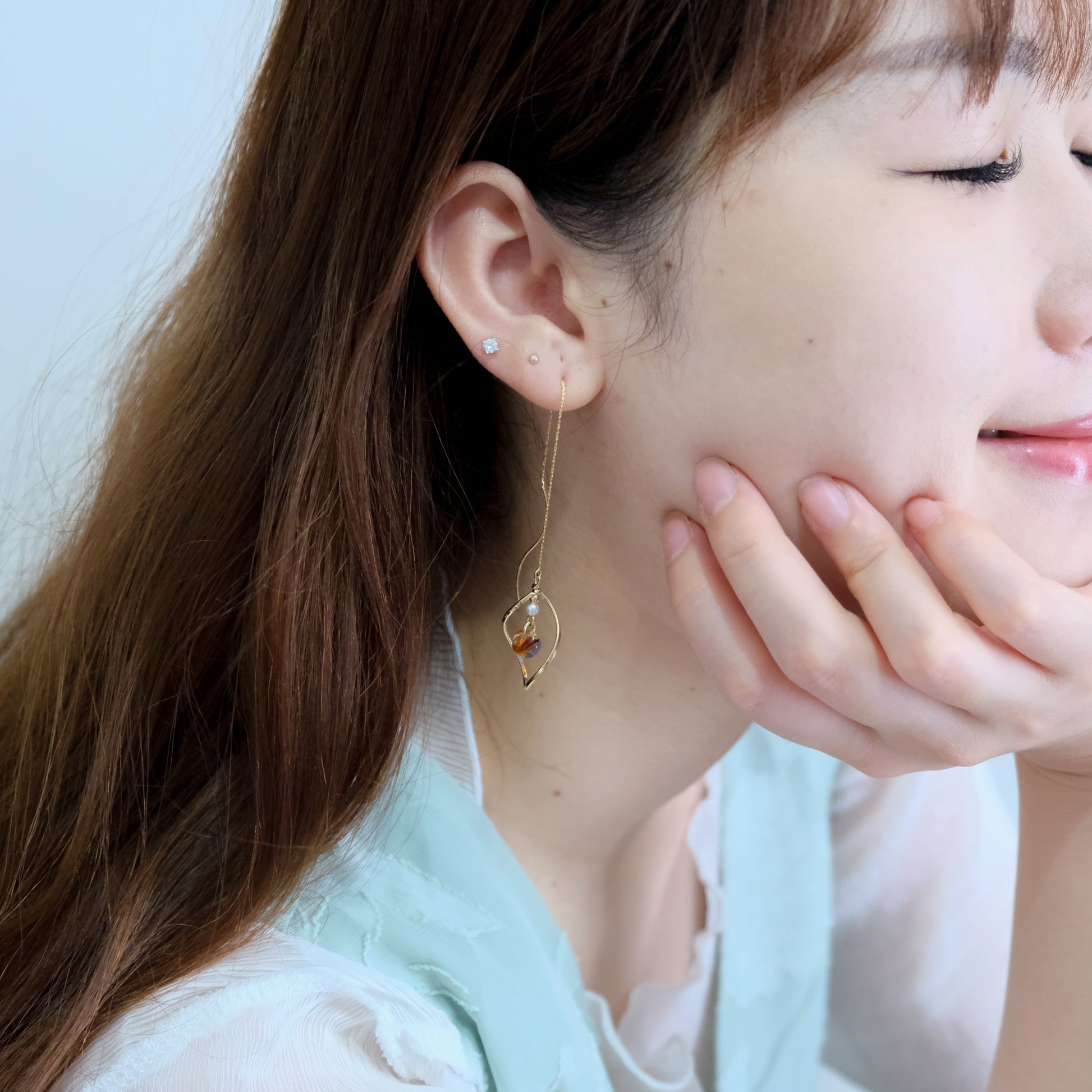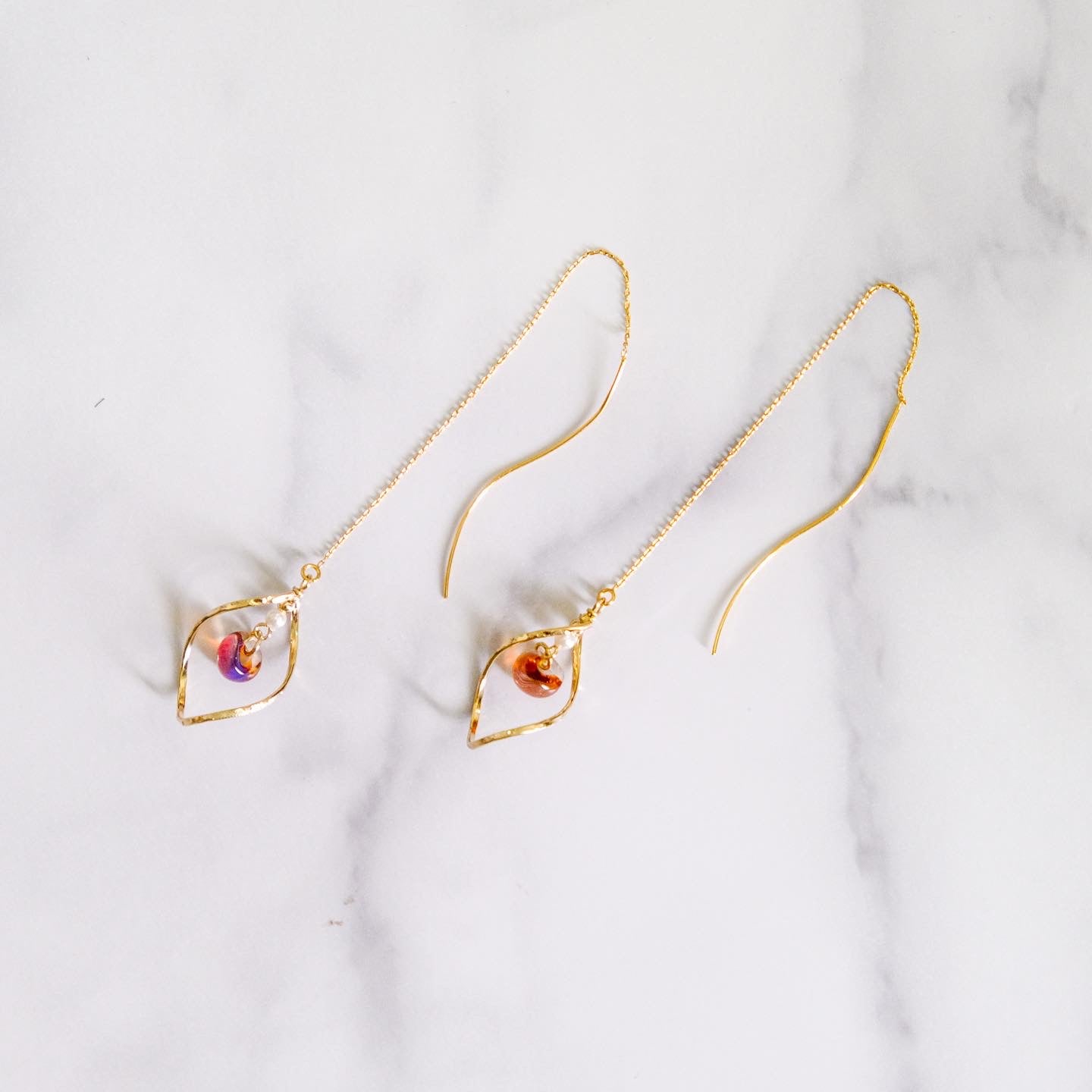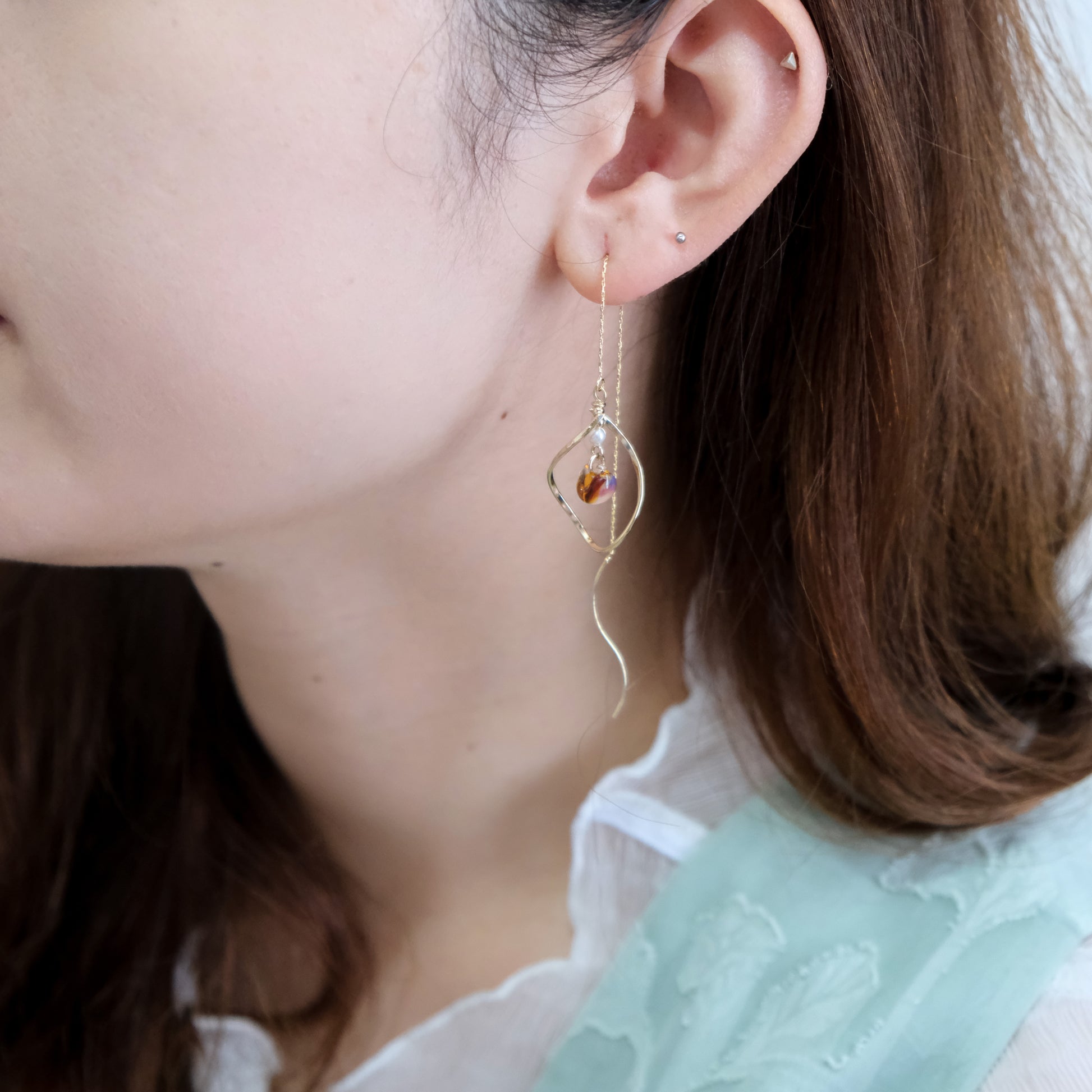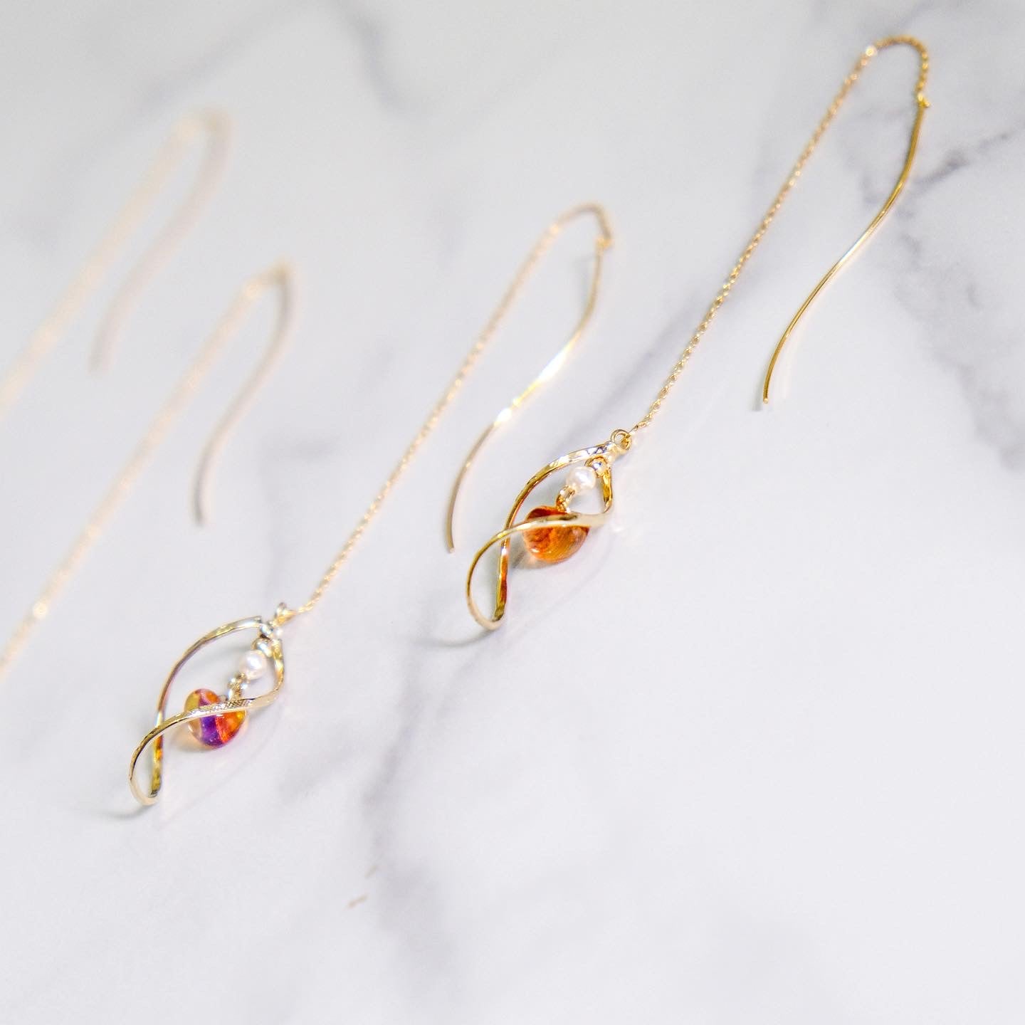 Sunset, USA Tearspearl Twist Pearl Drop Threader Adjustable Earrings