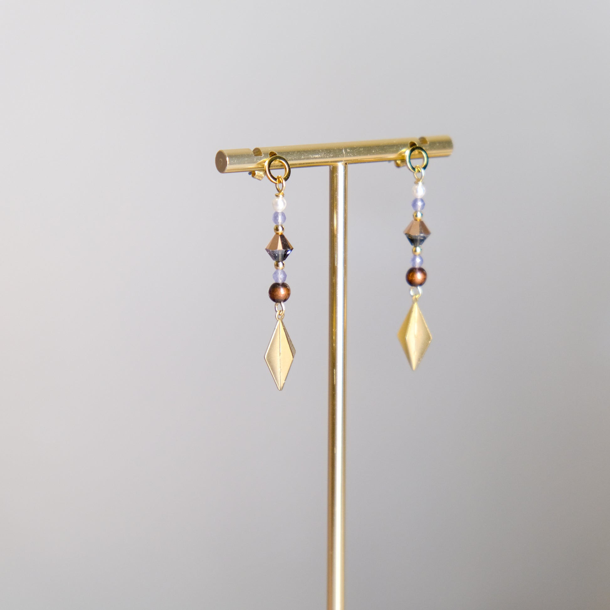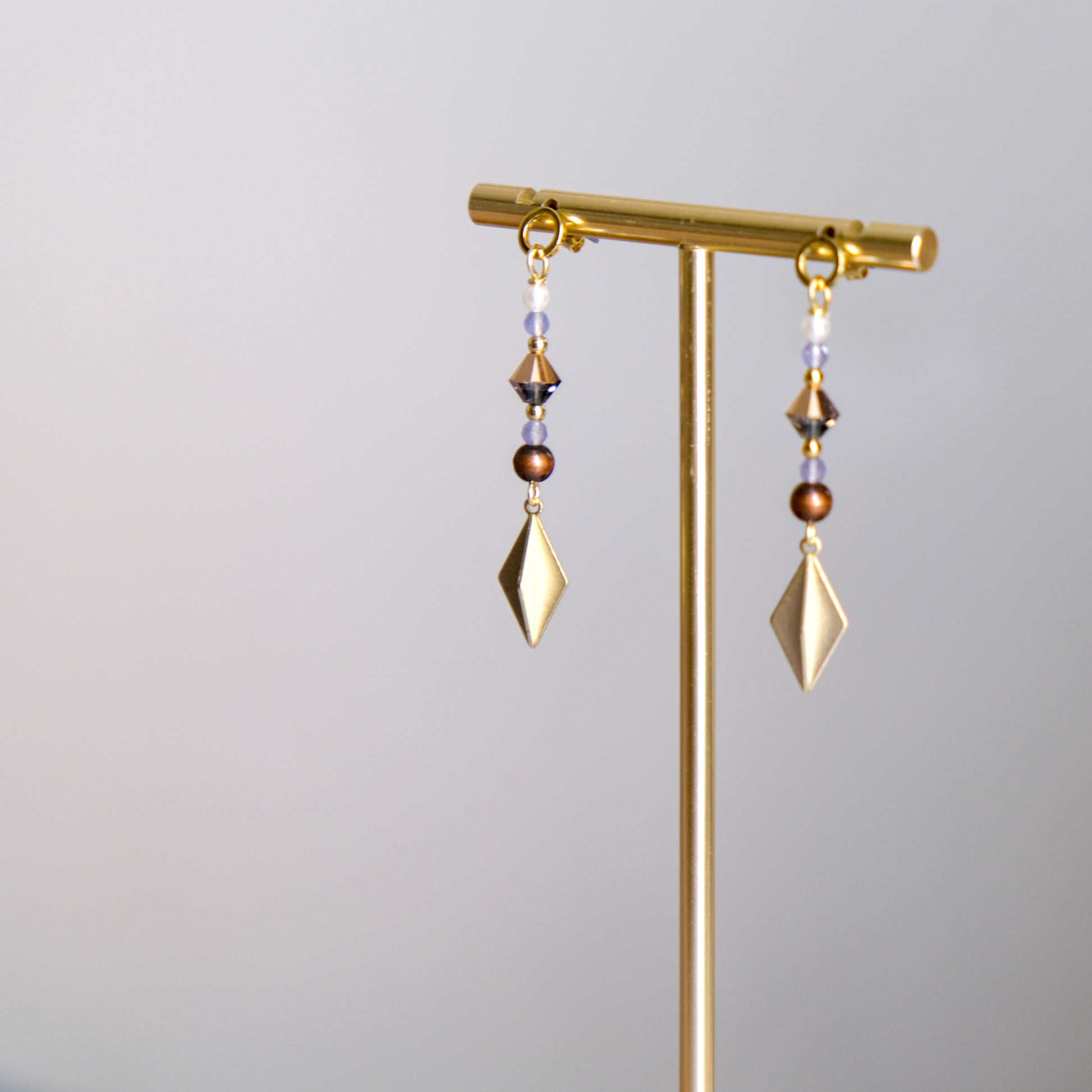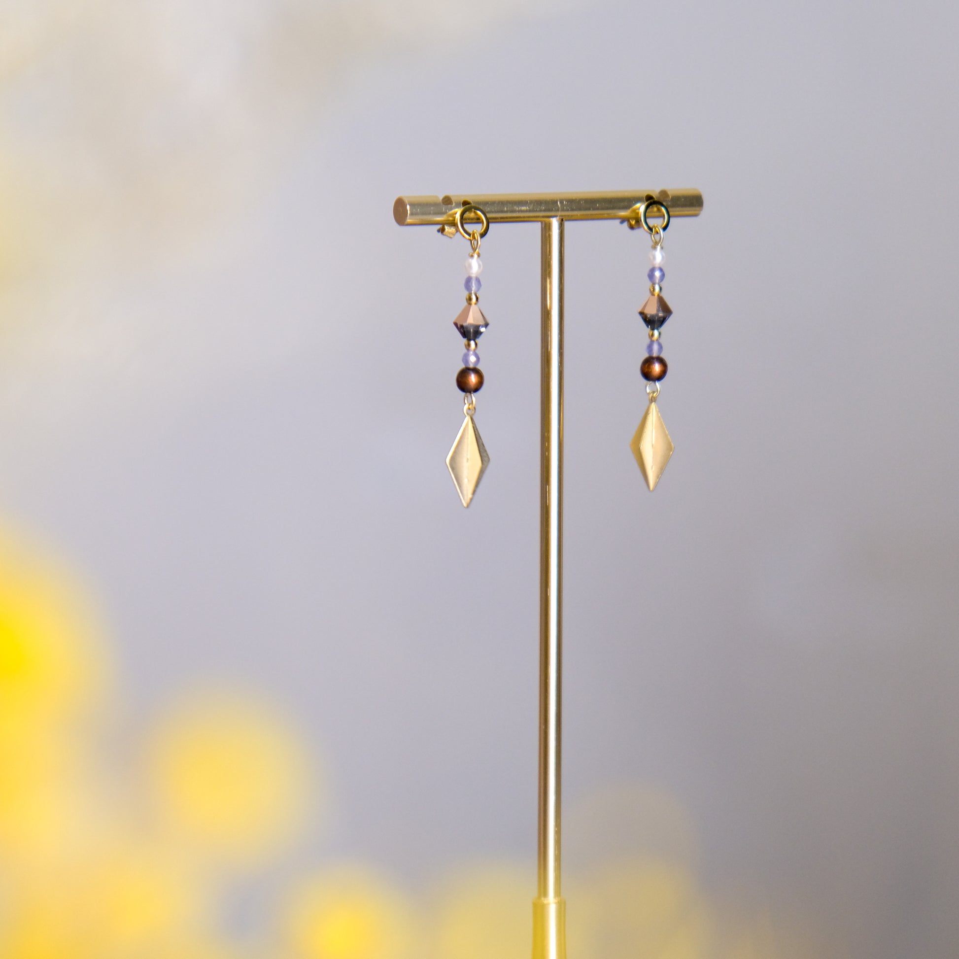 Vintage Art Deco Mat Gold Rhombus Swarovski Crystal Earrings