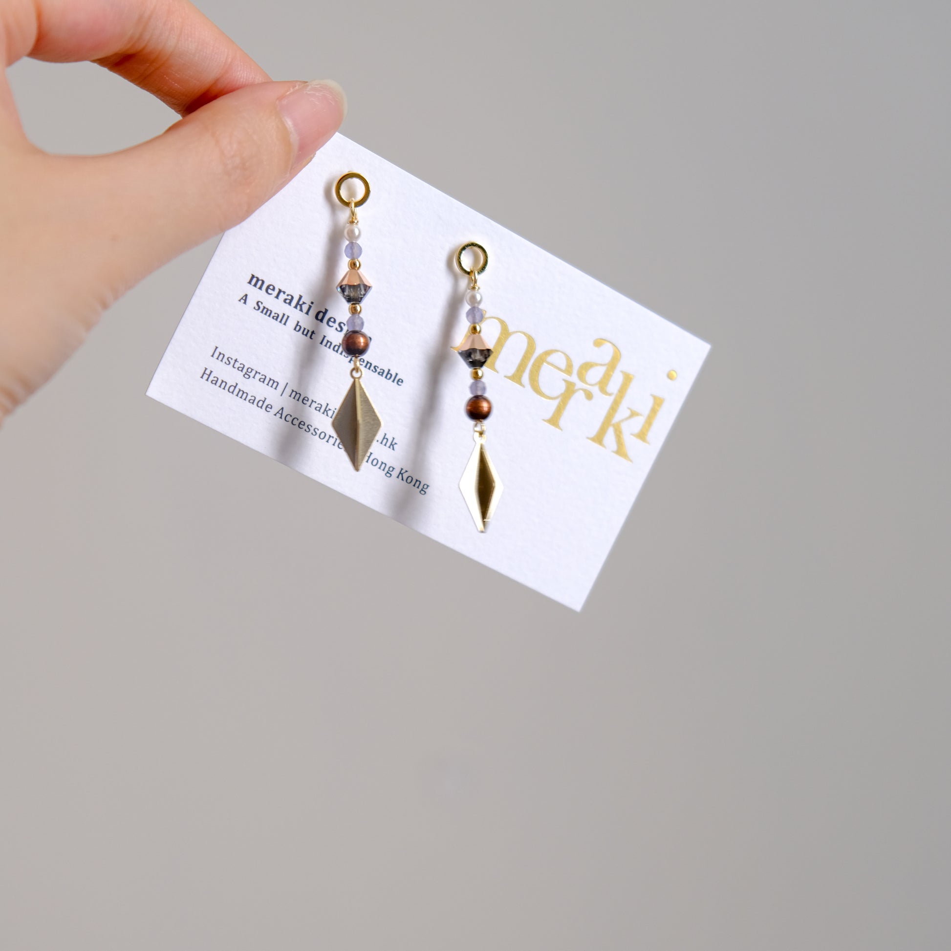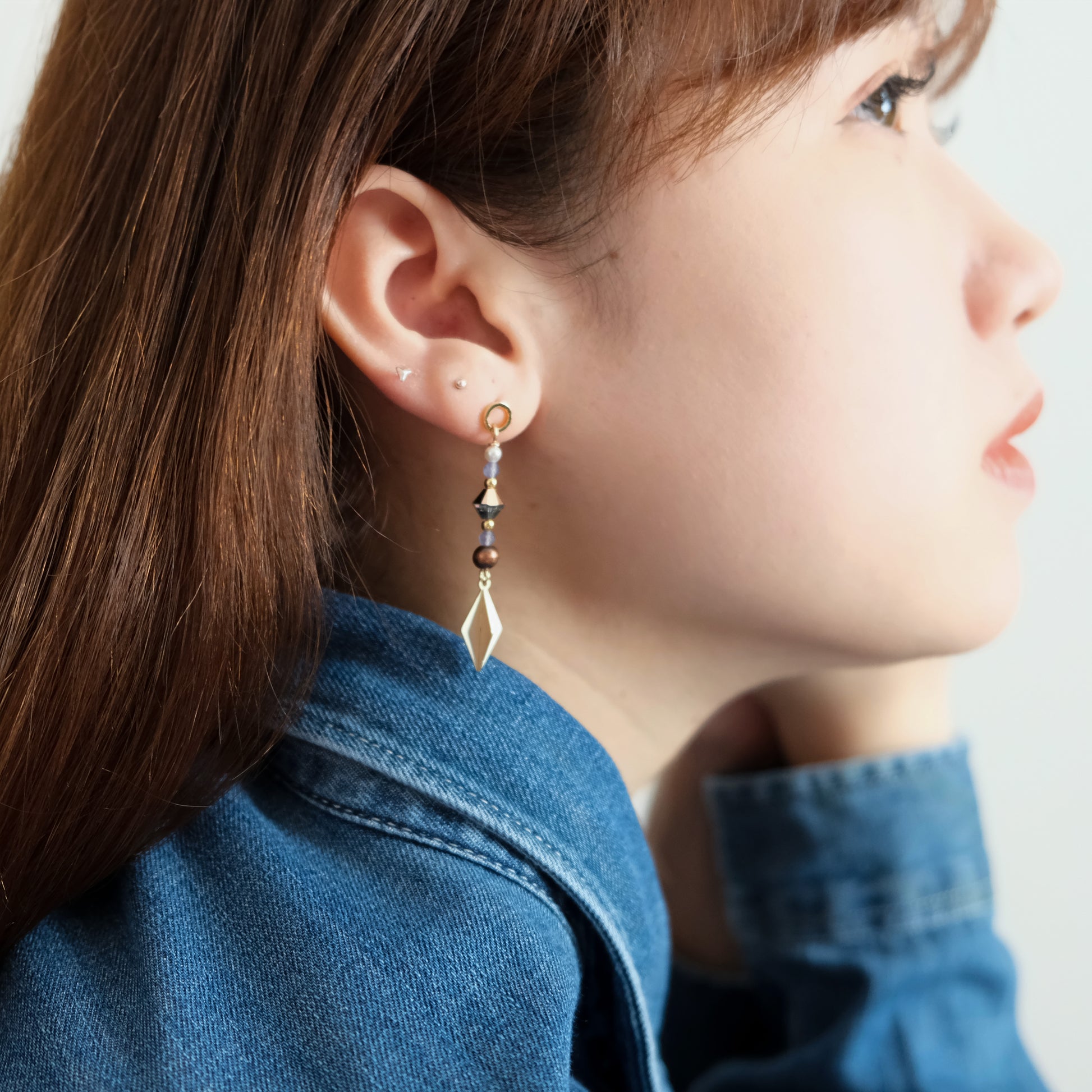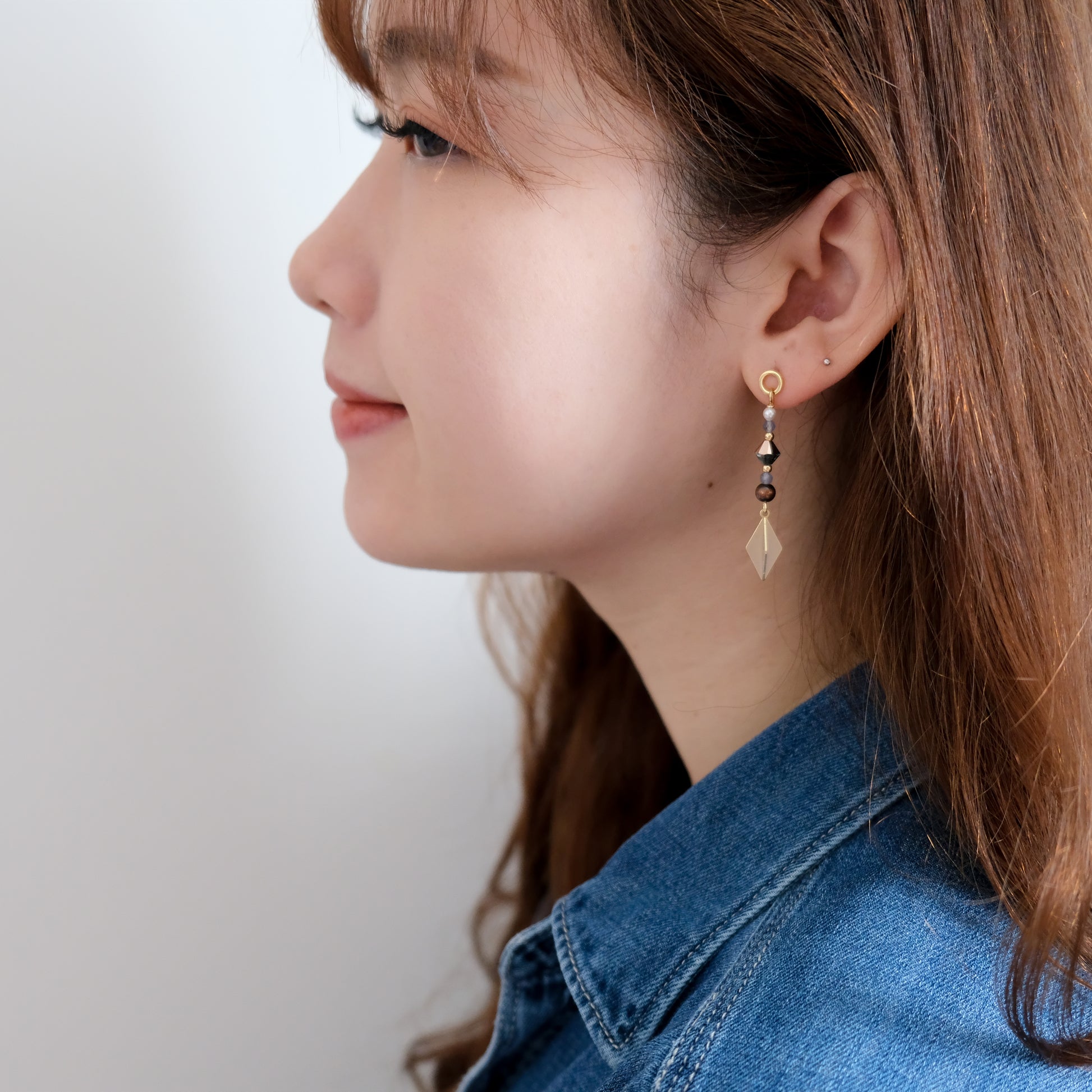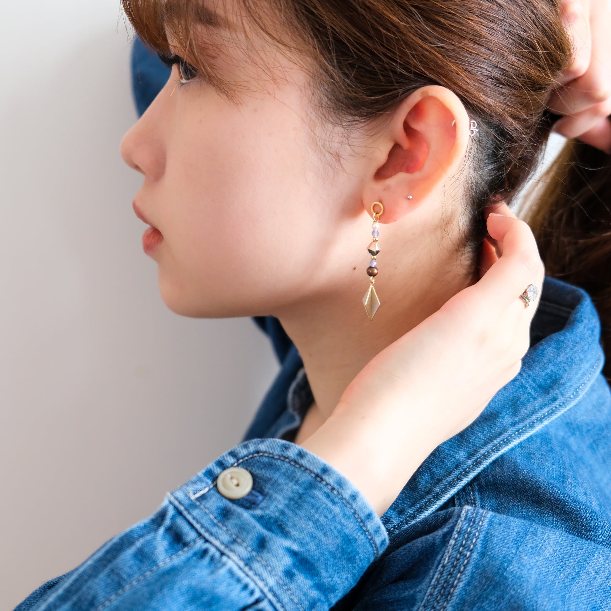 Vintage Art Deco Mat Gold Rhombus Swarovski Crystal Earrings