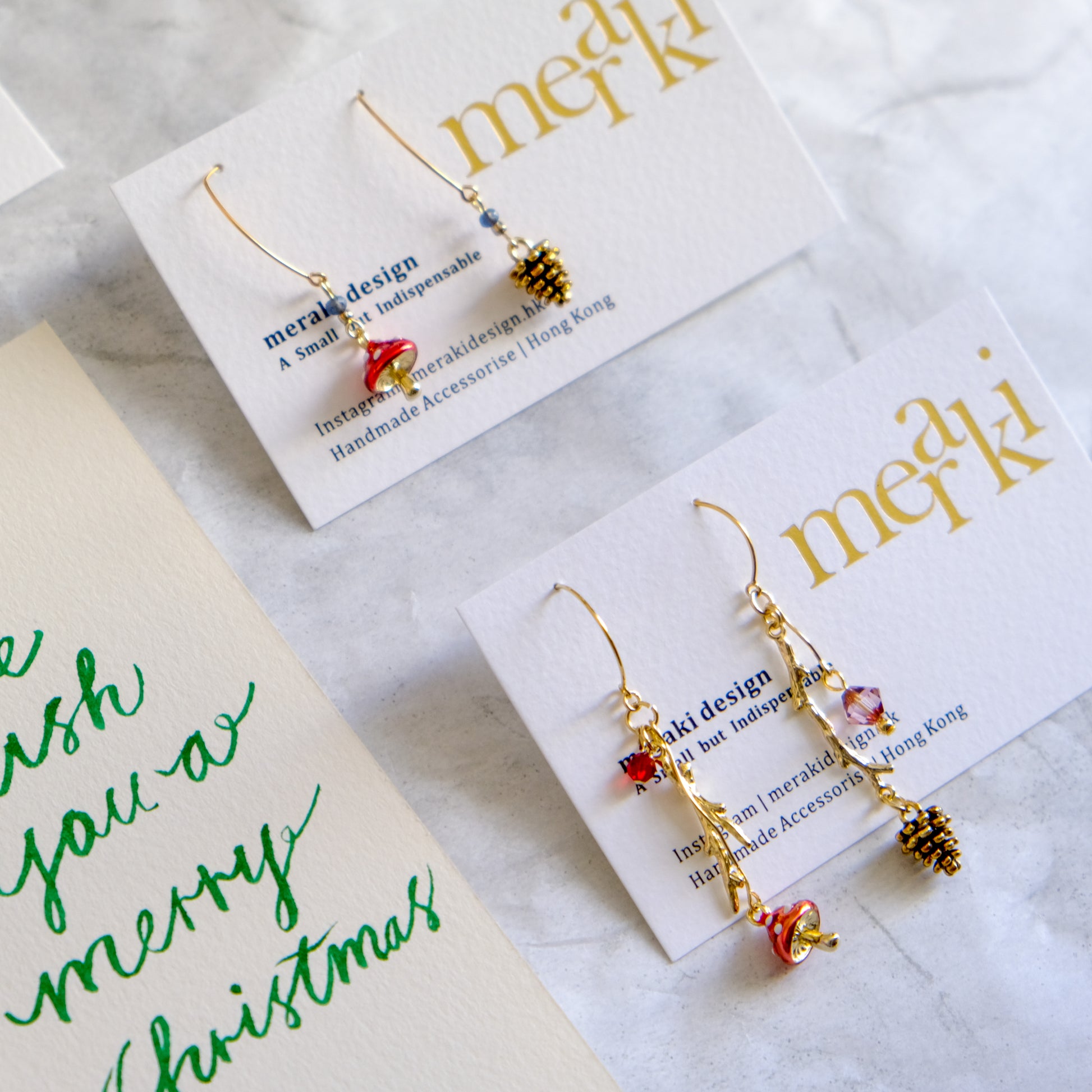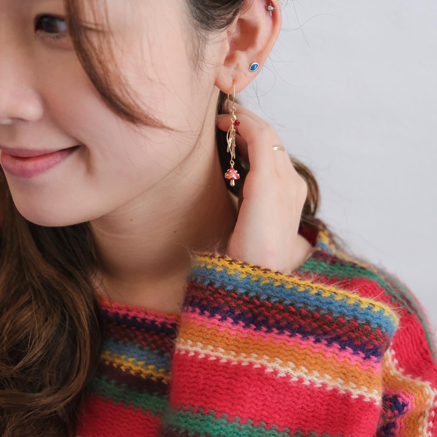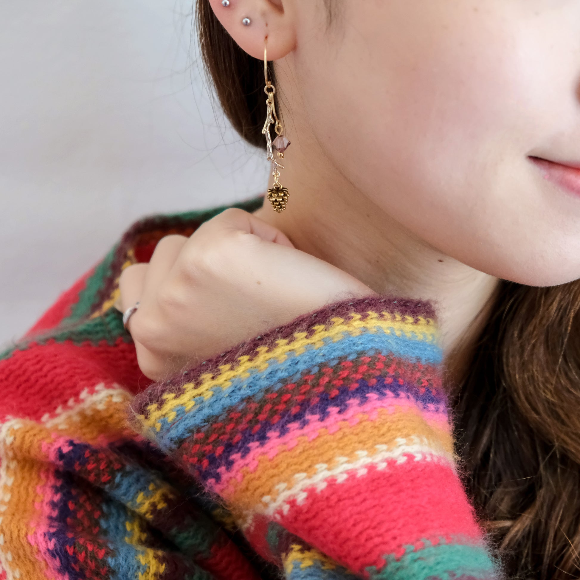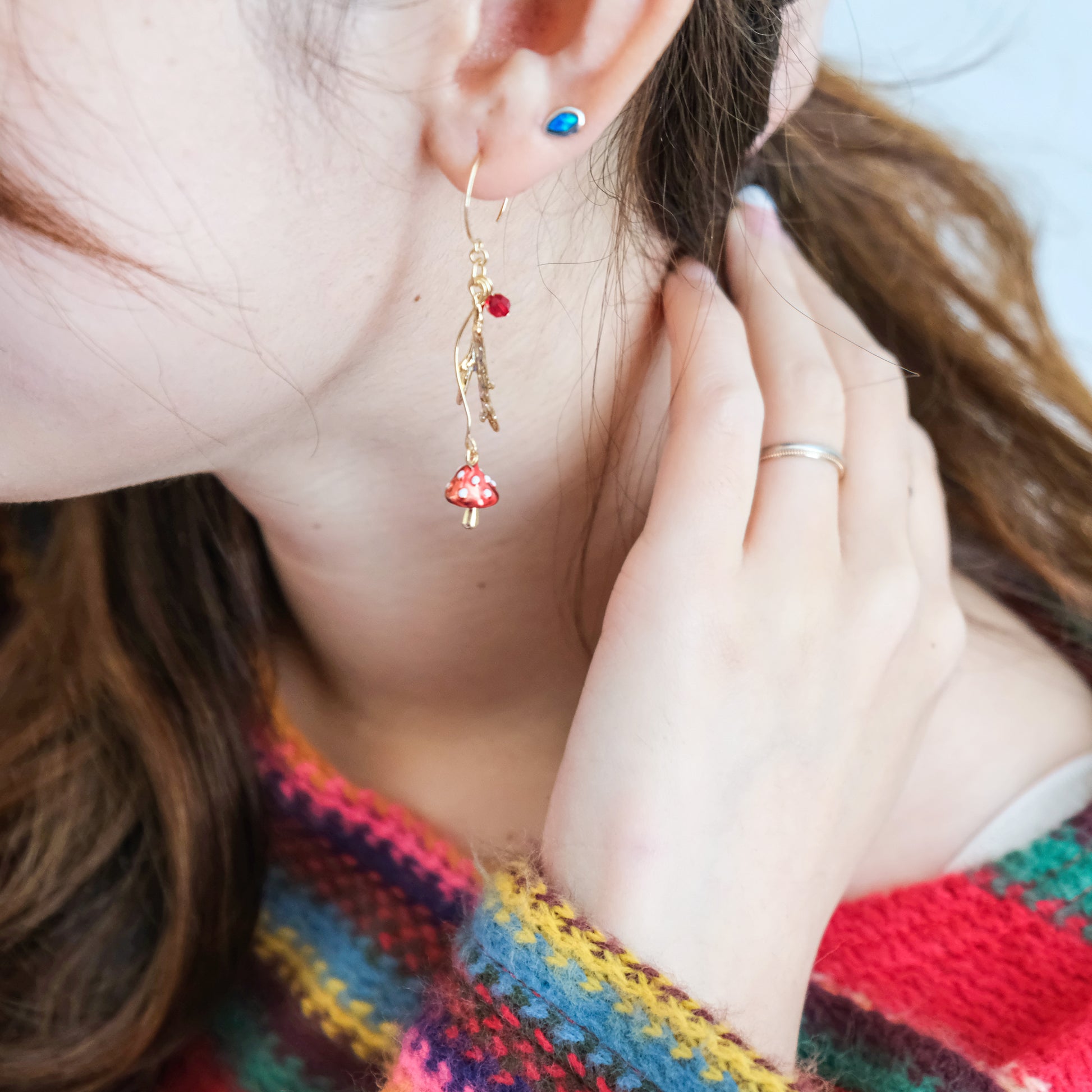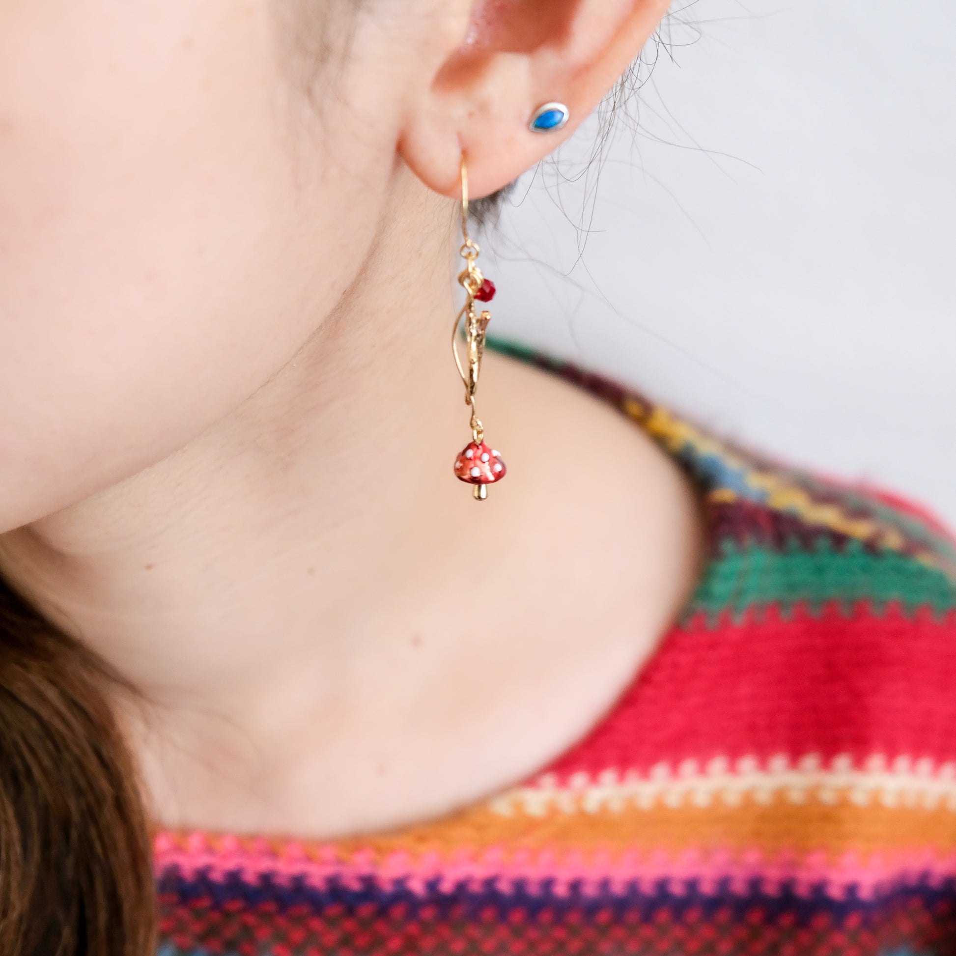 Pines and Mushroom Stick Swarovski Crystal Drop Earrings