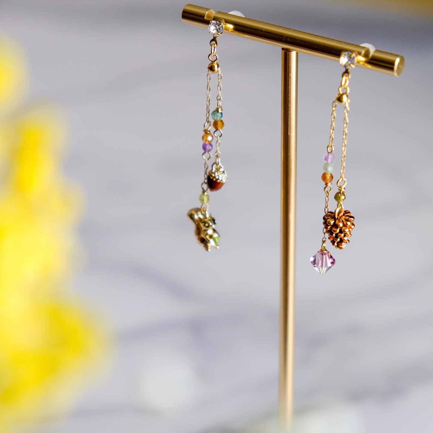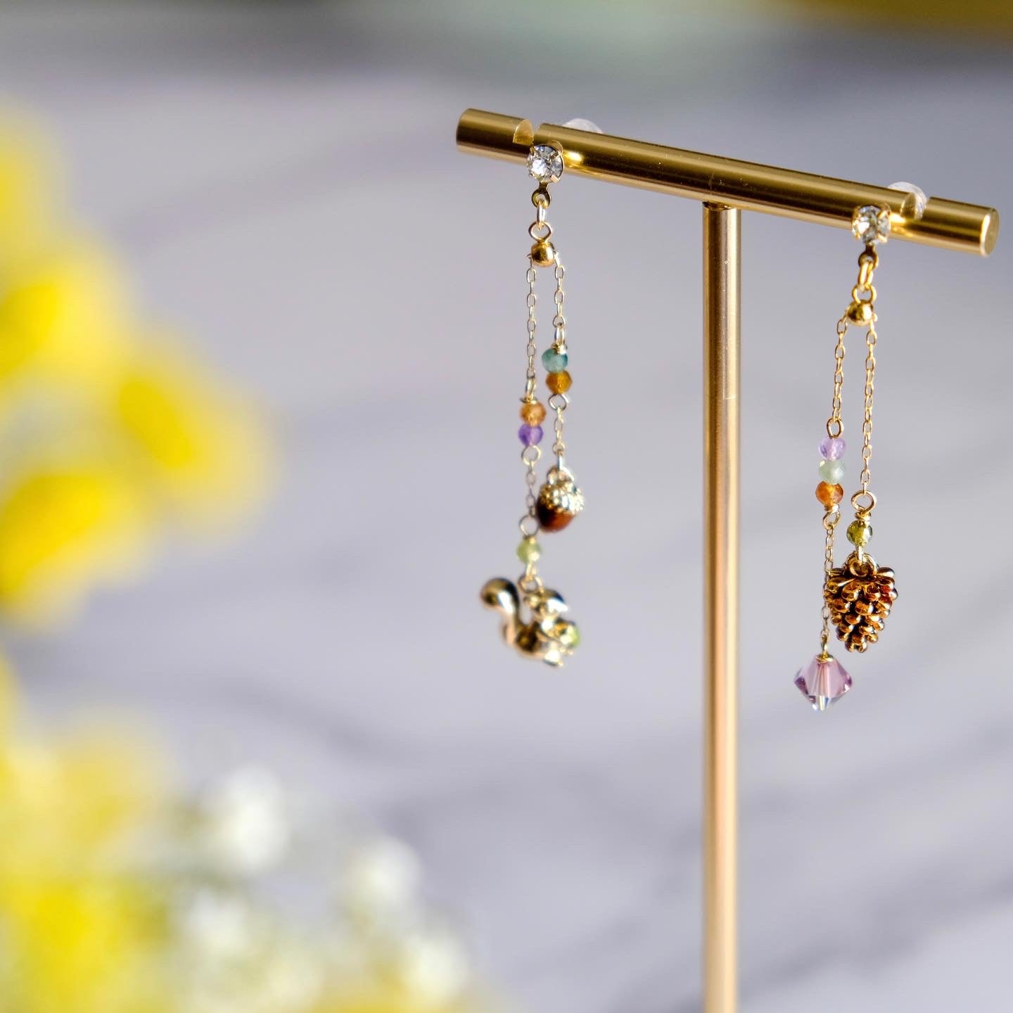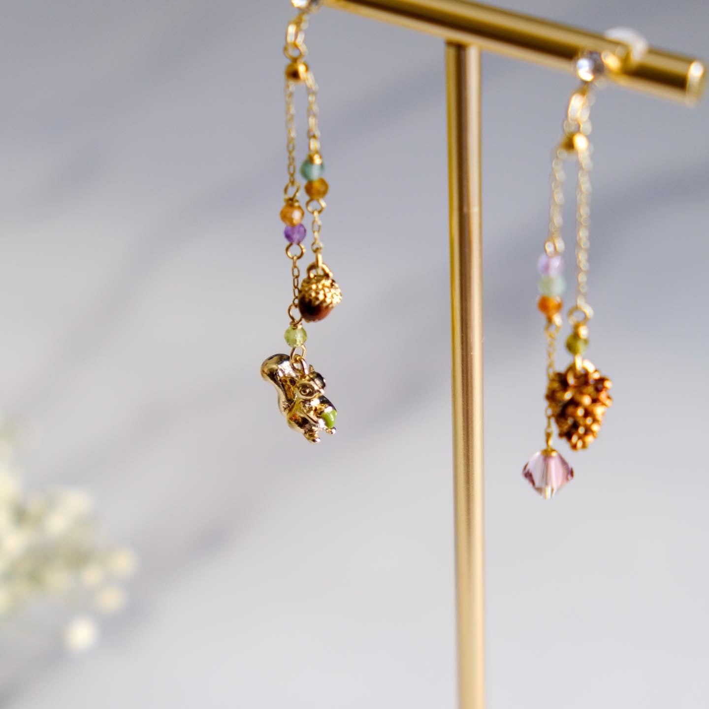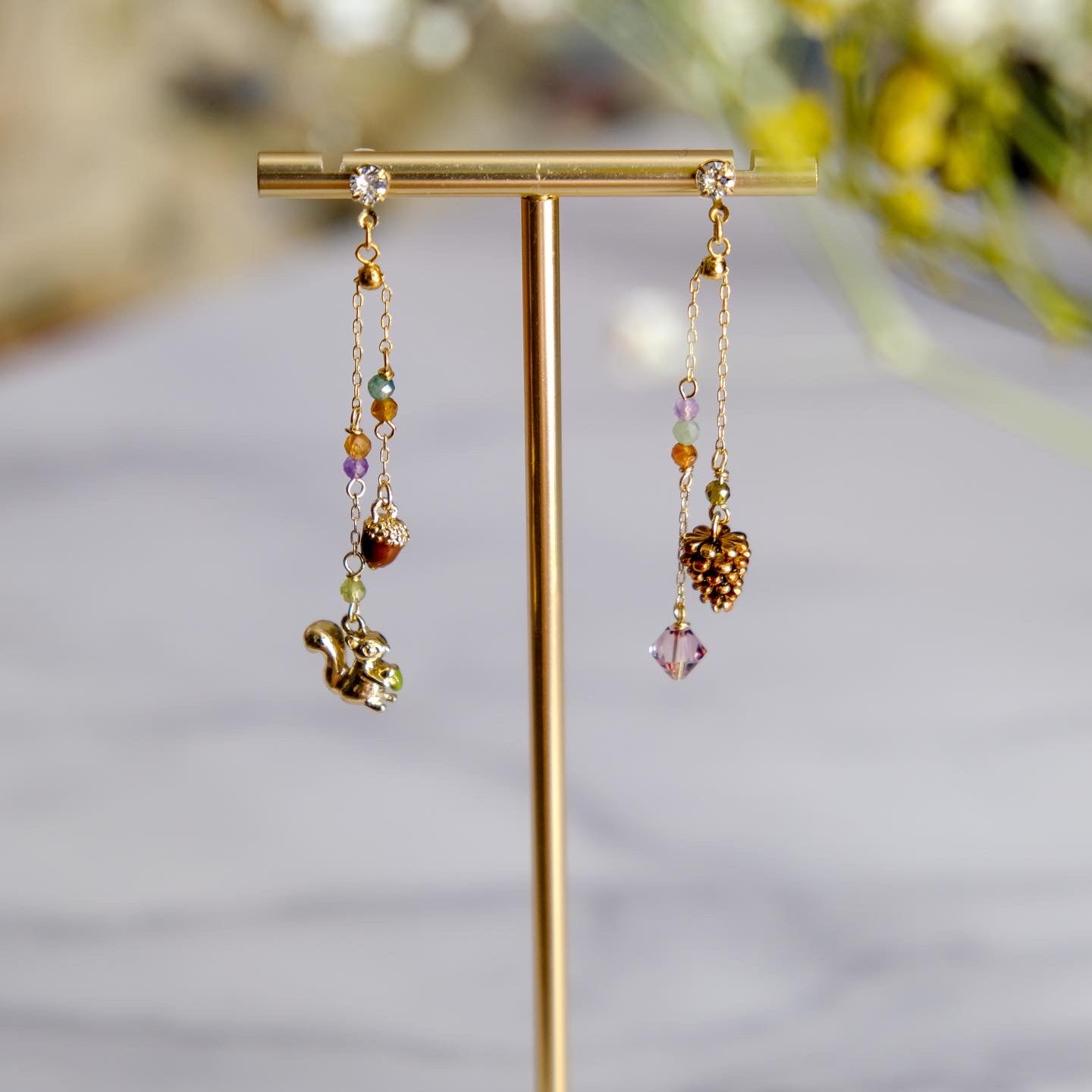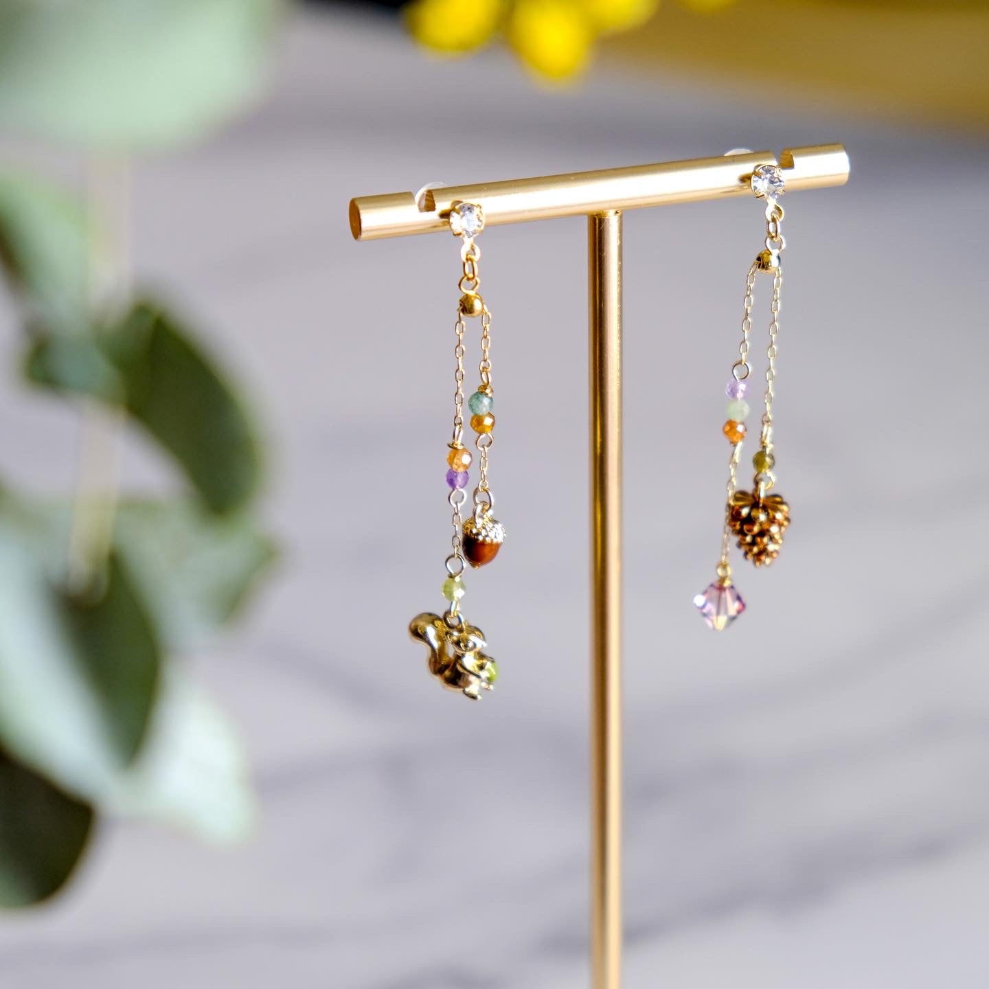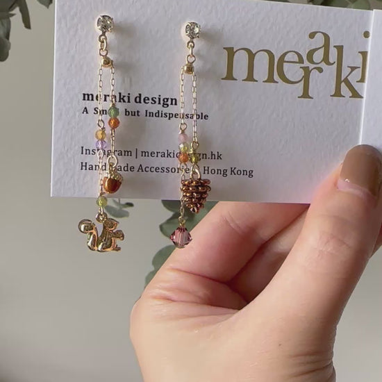 Squirrel and Pinecone Swarovski Crystal Drop Earrings