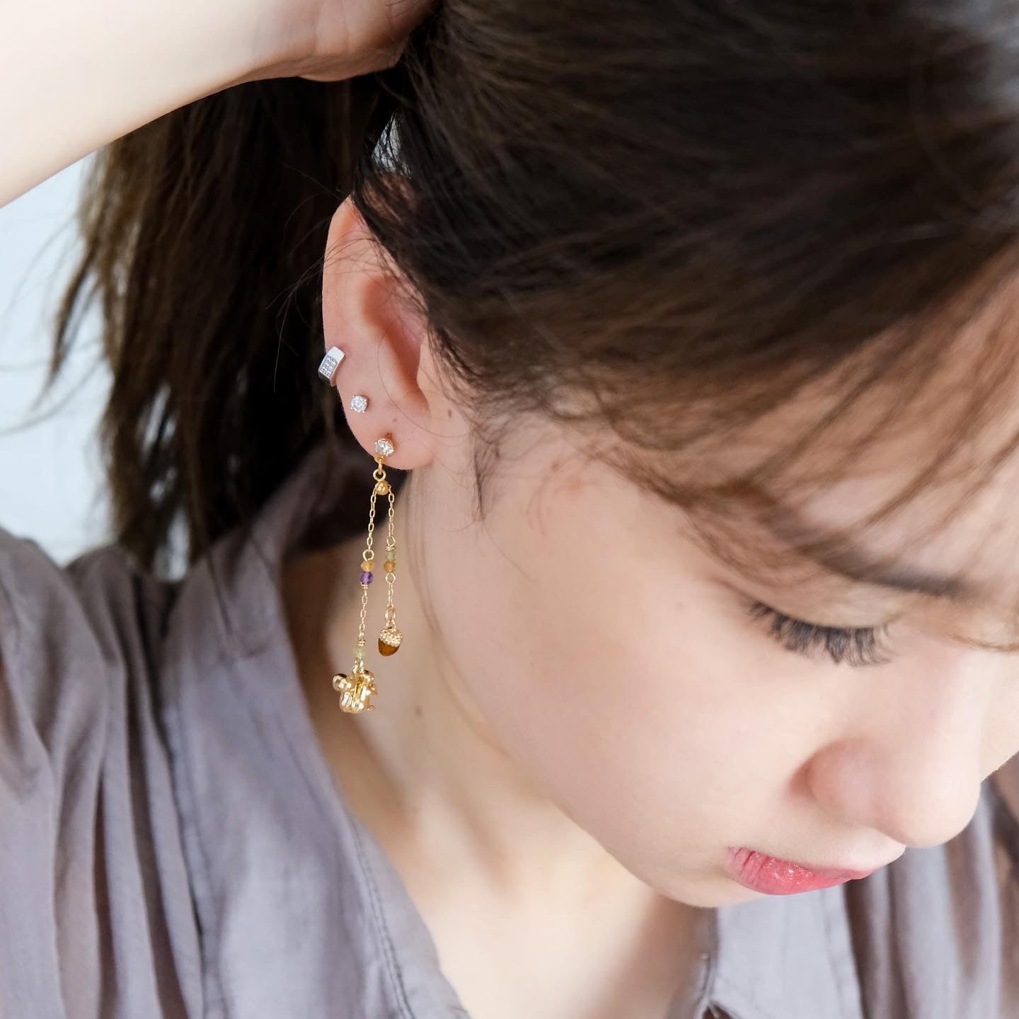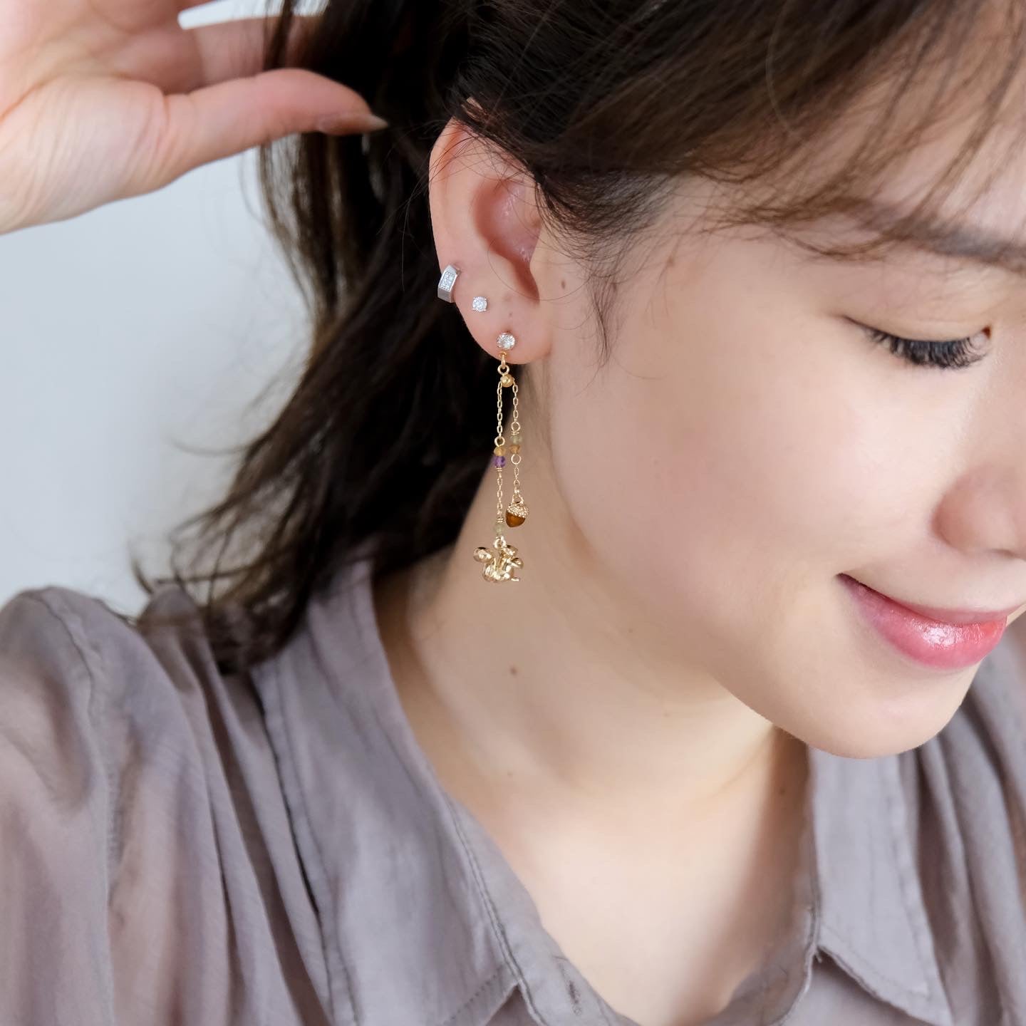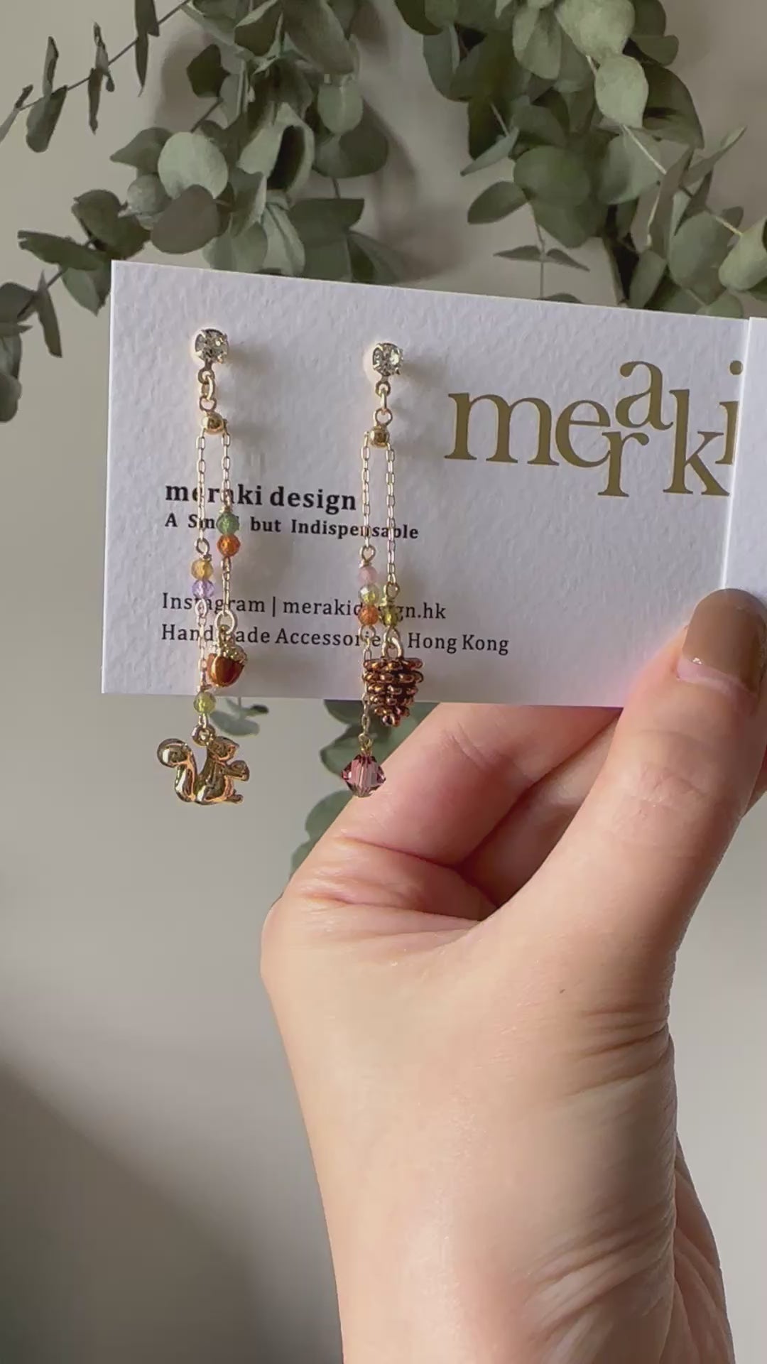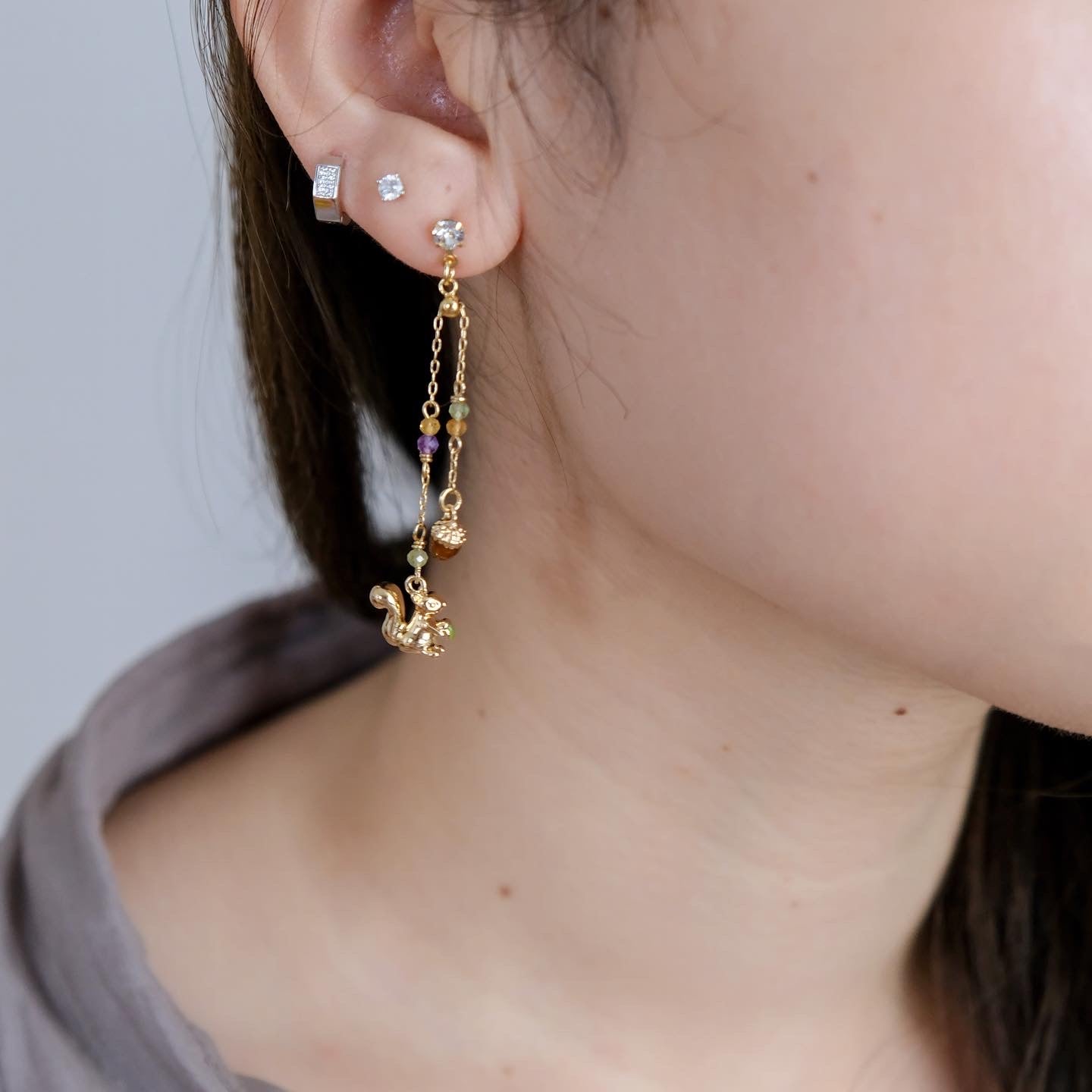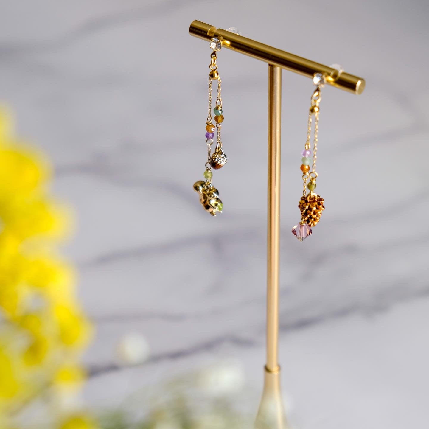 Squirrel and Pinecone Swarovski Crystal Drop Earrings